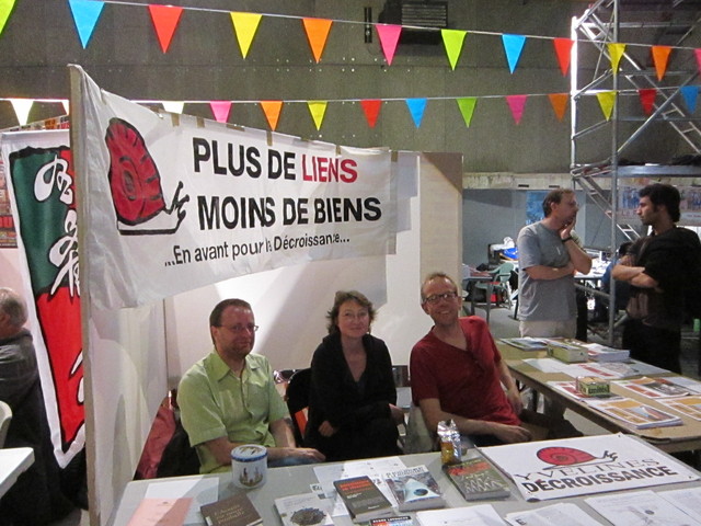 Disons le tout de suite : ce week-end a été très riche, en rencontres, en échanges. Nous avons bien évidemment échangé avec nos amis du Parti pour la décroissance (PPLD) et du Mouvement des Objecteurs de Croissance (MOC) qui étaient eux aussi signataires de l'appel, et qui tenaient un stand.